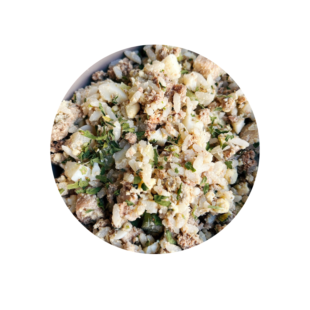Composição básica: Coração de Bovino, Língua de Bovino, Arroz Parboilizado, Chuchu, Cenoura, Óleo de Girassol, Óleo de Linhaça, Sal, Salsinha Moida, Ácido Fólico, Ácido Pantotênico, Biotina, Calcário Calcitico, Colina, D- Pantotenato de Cálcio, D – Alfa – Tocoferol, Extrato de Alecrim, Extrato de Chá Verde, Farinha de Algas, Iodato de Cálcio, Niacina, Oxido de Zinco, Selenito de Sódio, Sulfato de Manganês, Sulfato de Ferro, Sulfato de Cobre, Vitamina A, Vitamina B1, Vitamina B2, Vitamina B6, Vitamina B12, Vitamina C, Vitamina D3, Vitamina E, Vitamina K3, Zéolita.