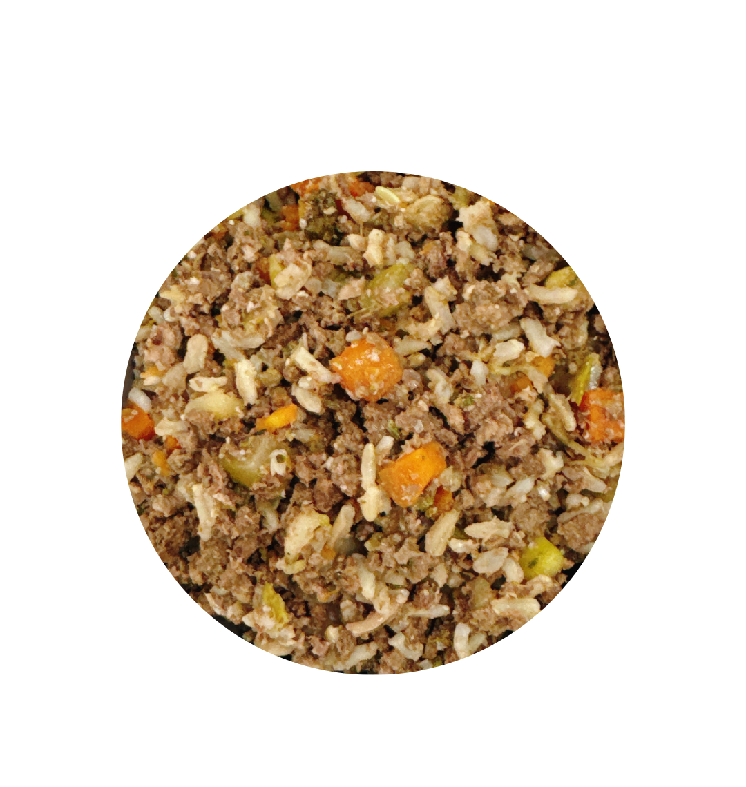 Composição básica: Carne de Bovino, Coração de Bovino, Coração de Suíno, Arroz Integral, Abobrinha, Brócolis, Cenoura, Farelo de Aveia, Óleo de Girassol, Óleo de Linhaça, Salsinha Moída, Sal, Ácido Fólico, Ácido Pantotênico, Biotina, Calcário Calcitico, Colina, D- Pantotenato de Cálcio, D – Alfa – Tocoferol, Extrato de Alecrim, Extrato de Chá Verde, Farinha de Algas, Iodato de Cálcio, Niacina, Oxido de Zinco, Selenito de Sódio, Sulfato de Manganês, Sulfato de Ferro, Sulfato de Cobre, Vitamina A, Vitamina B1, Vitamina B2, Vitamina B6, Vitamina B12, Vitamina C, Vitamina D3, Vitamina E, Vitamina K3, Zéolita