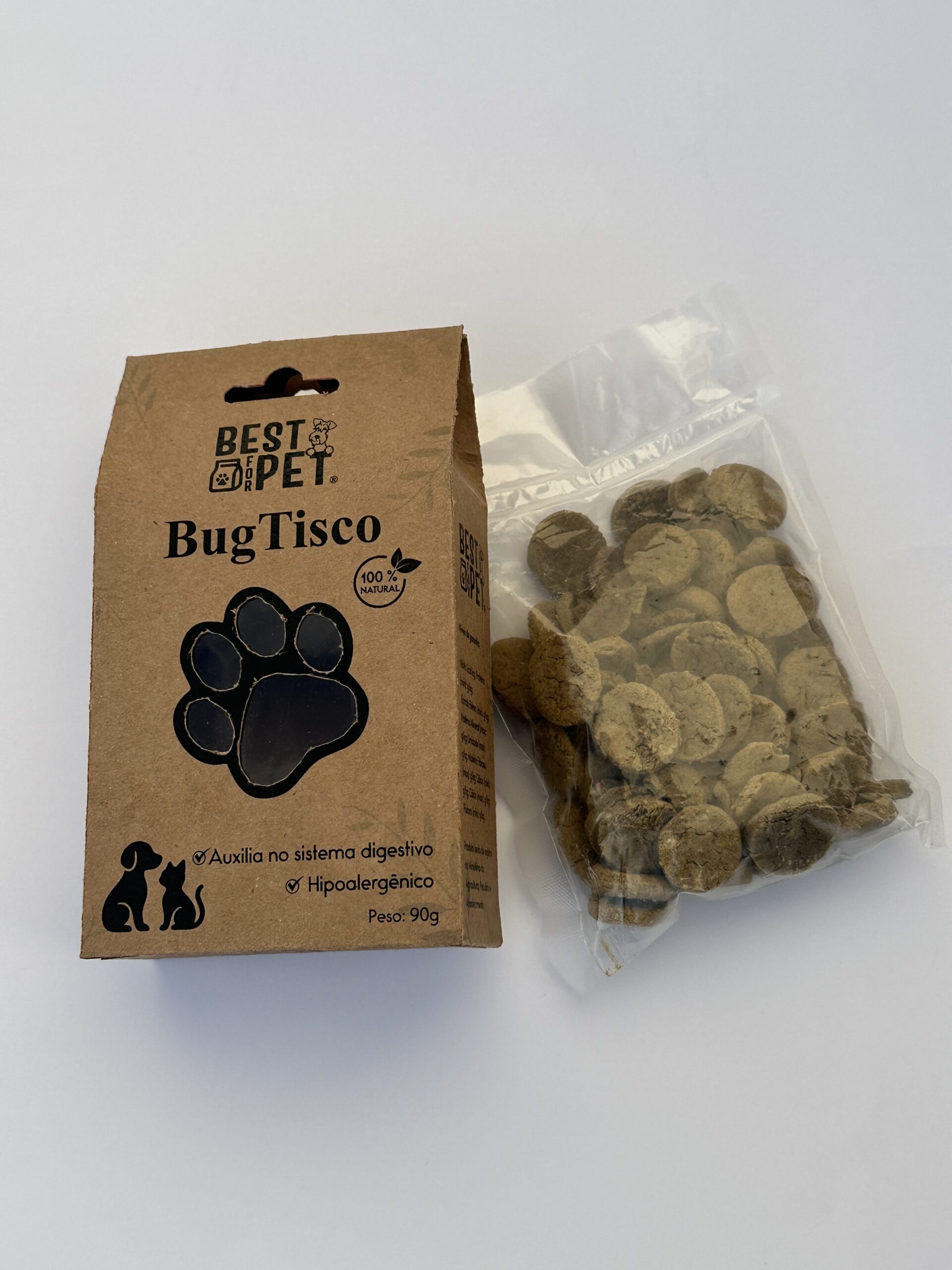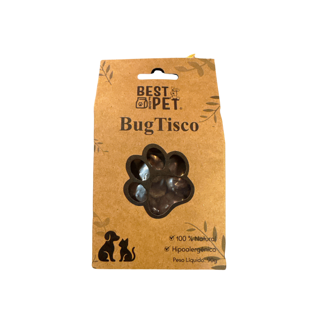 Feito com proteína de BSF (larva de mosca-soldado-negra), o Bugtisco é um biscoito nutritivo, sustentável e altamente palatável. Rico em proteínas de alta qualidade, é uma excelente alternativa para pets com sensibilidades alimentares, além de ser uma escolha consciente para quem se preocupa com o meio ambiente.