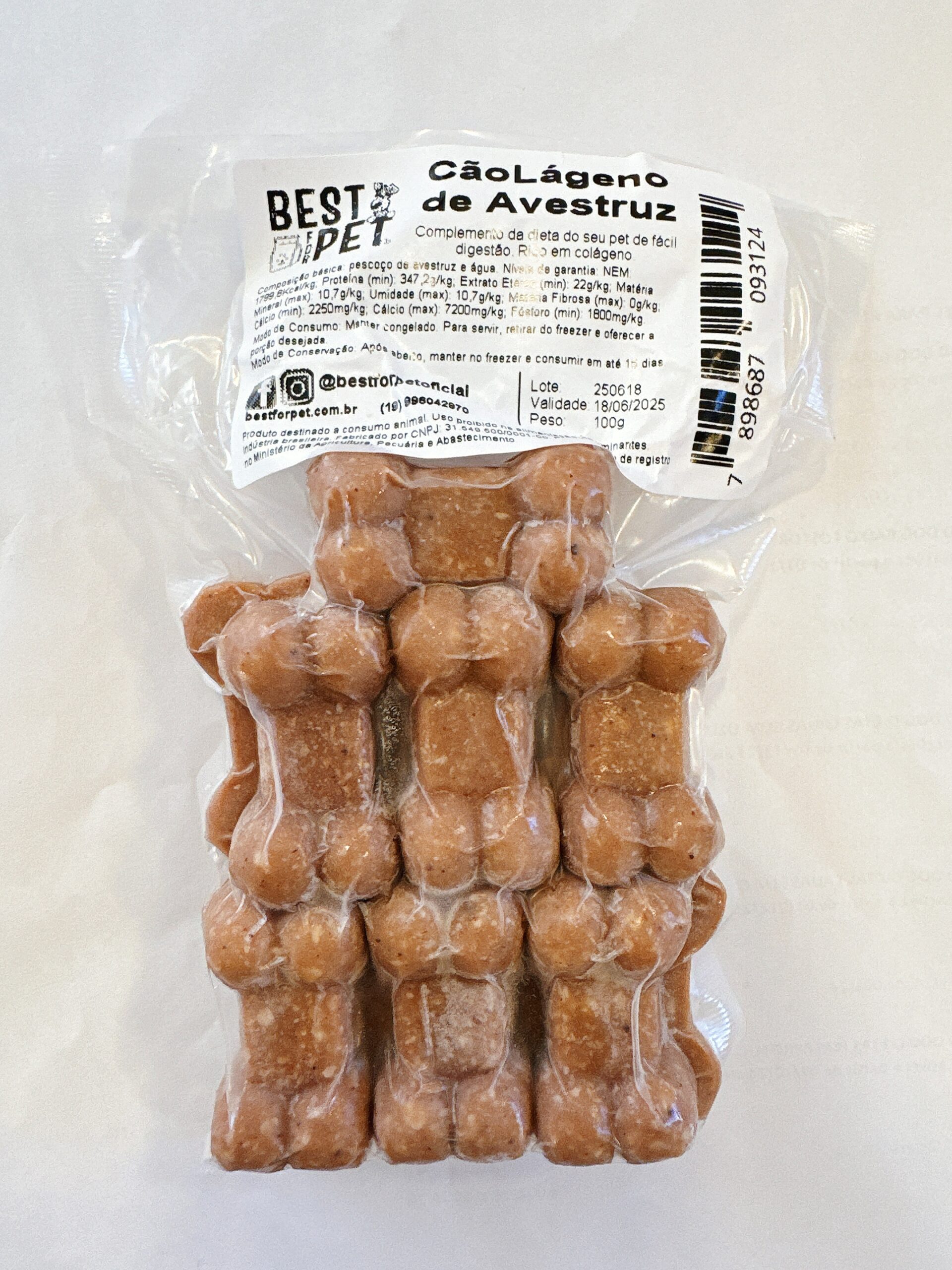 Ele vem congelado, embalado a vácuo e tem formato de ossinho, o que o torna muito simples de servir: basta tirar do freezer e oferecer. Fácil e prático!