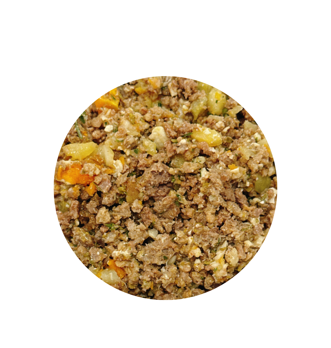 Composição básica: Moela de Frango, Língua de Bovino, Batata Doce, Chuchu, Cenoura, Óleo de Girassol, Óleo de Linhaça, Sal, Salsinha Moida, Ácido Fólico, Biotina, Calcário Calcítico, Colina, Dióxido de silício, Extrato de Alecrim, Extrato de Chá Verde, Fosfato bicálcico, Iodato de Cálcio, Niacina, Oxido de Zinco, Pantotenato de cálcio, Selenito de Sódio, Sulfato de Manganês, Sulfato de Ferro, Sulfato de Cobre, Vitamina A, Vitamina B1, Vitamina B2, Vitamina B6, Vitamina B12, Vitamina C, Vitamina D3, Vitamina E, Vitamina K3, Zeolita.
