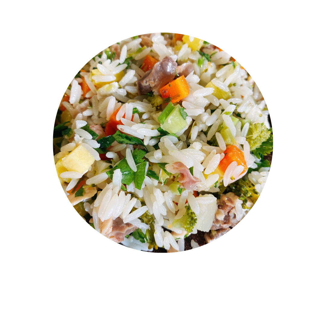 Composição básica: Carne de Frango, Moela de Frango, Língua de Bovino, Arroz Parbolizado, Abobrinha, Batata Doce, Cenoura, Óleo de Girassol, Óleo de Linhaça, Salsinha Moída, Sal, Ácido Fólico, Ácido Pantotênico, Biotina, Calcário Calcitico, Colina, D- Pantotenato de Cálcio, D – Alfa – Tocoferol, Extrato de Alecrim, Extrato de Chá Verde, Farinha de Algas, Iodato de Cálcio, Niacina, Oxido de Zinco, Selenito de Sódio, Sulfato de Manganês, Sulfato de Ferro, Sulfato de Cobre, Vitamina A, Vitamina B1, Vitamina B2, Vitamina B6, Vitamina B12, Vitamina C, Vitamina D3, Vitamina E, Vitamina K3, Zéolita.