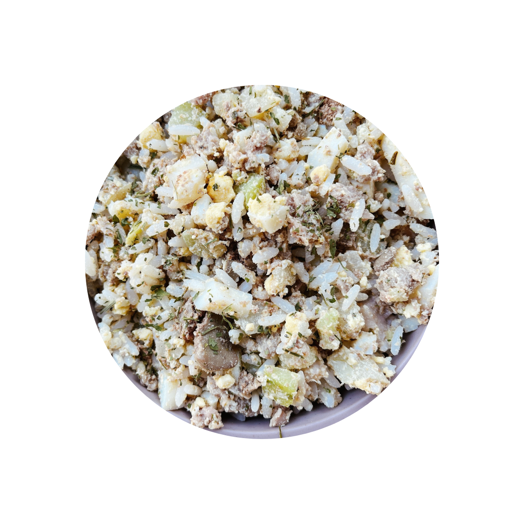 Composição básica: Moela de Frango, Coração de Suíno, Arroz Parboilizado, Chuchu, Cenoura,  Óleo de Girassol, Óleo de Linhaça, Sal, Salsinha Moída, Ácido Fólico, Biotina, Calcário Calcítico, Colina, Dióxido de silício, Extrato de Alecrim, Extrato de Chá Verde, Fosfato bicálcico, Iodato de Cálcio, Niacina, Oxido de Zinco, Pantotenato de cálcio, Selenito de Sódio, Sulfato de Manganês, Sulfato de Ferro, Sulfato de Cobre, Vitamina A, Vitamina B1, Vitamina B2, Vitamina B6, Vitamina B12, Vitamina C, Vitamina D3, Vitamina E, Vitamina K3, Zeolita.