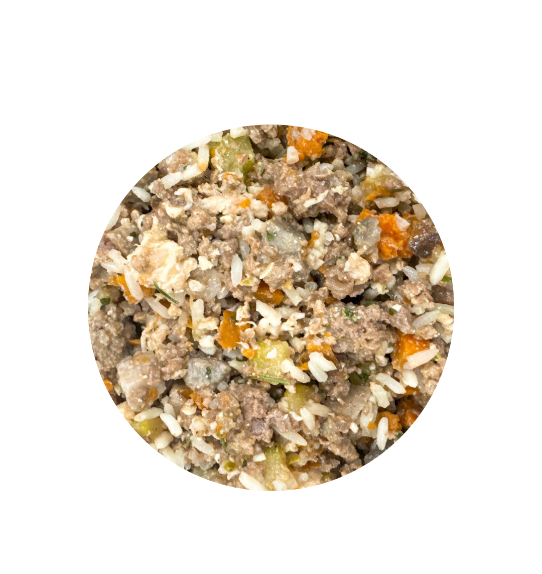 Composição básica: Carne de Frango, Moela de Frango, Língua de Bovino, Arroz Parboilizado, Abobrinha, Cará, Cenoura, Óleo de Girassol, Óleo de Linhaça, Salsinha Moída, Sal, Ácido Fólico, Ácido Pantotênico, Biotina, Calcário Calcitico, Colina, D- Pantotenato de Cálcio, D – Alfa – Tocoferol, Extrato de Alecrim, Extrato de Chá Verde, Farinha de Algas, Iodato de Cálcio, Niacina, Oxido de Zinco, Selenito de Sódio, Sulfato de Manganês, Sulfato de Ferro, Sulfato de Cobre, Vitamina A, Vitamina B1, Vitamina B2, Vitamina B6, Vitamina B12, Vitamina C, Vitamina D3, Vitamina E, Vitamina K3, Zéolita.