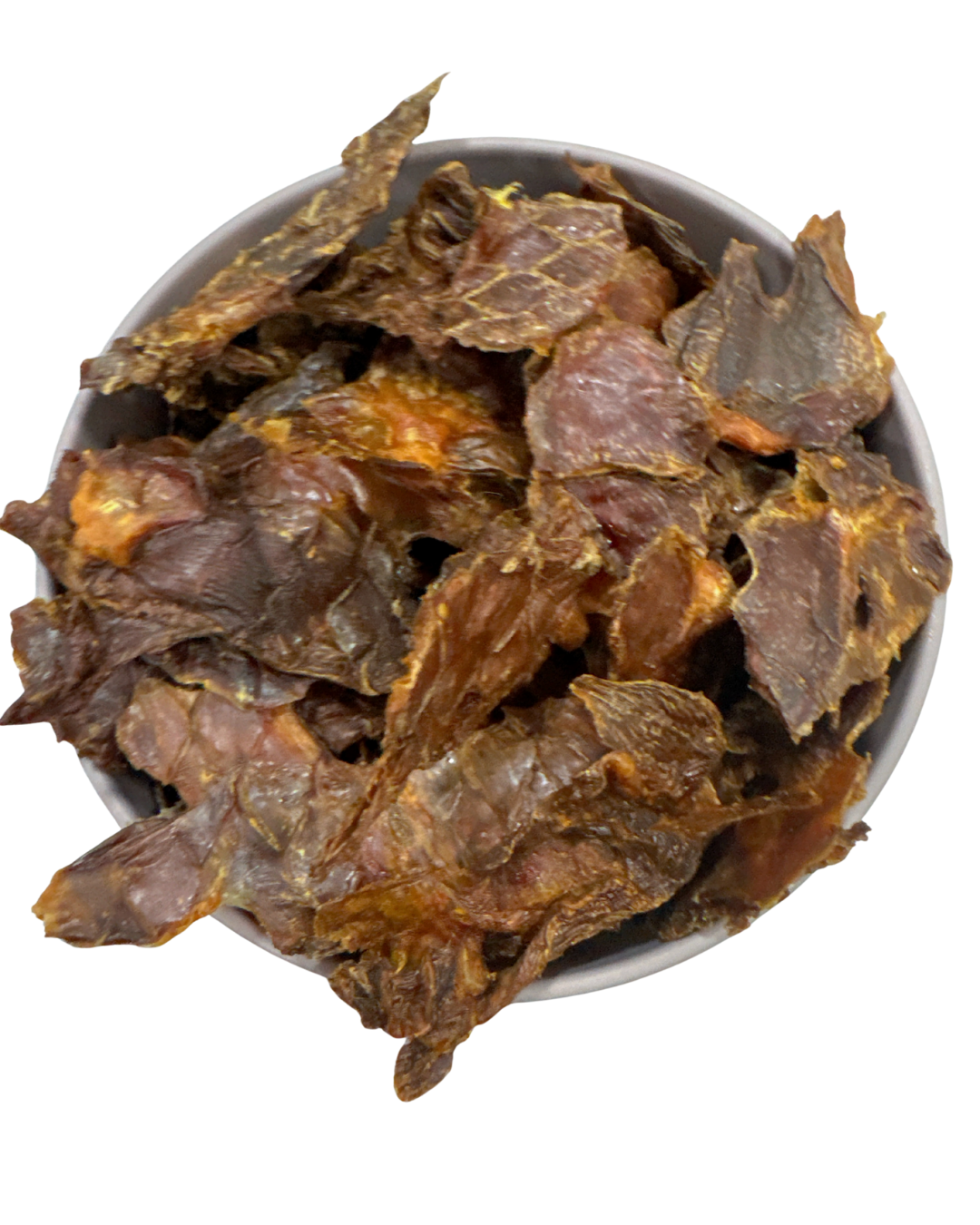 Nosso petisco de Moela Desidratada é 100% natural, rico em proteínas e cheio de sabor.