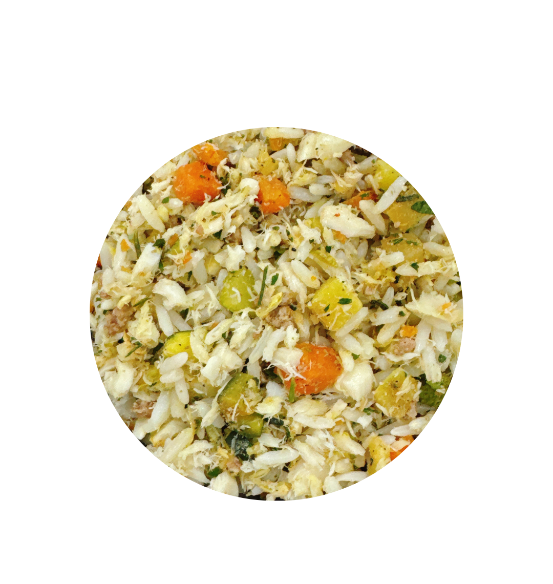 Composição básica: Carne de Merluza, Língua de Bovino, Arroz Parboilizado, Abobrinha, Cenoura, Mandioquinha, Óleo de Girassol, Óleo de Linhaça, Salsinha Moída, Sal, Ácido Fólico, Ácido Pantotênico, Biotina, Calcário Calcitico, Colina, D- Pantotenato de Cálcio, D – Alfa – Tocoferol, Extrato de Alecrim, Extrato de Chá Verde, Farinha de Algas, Iodato de Cálcio, Niacina, Oxido de Zinco, Selenito de Sódio, Sulfato de Manganês, Sulfato de Ferro, Sulfato de Cobre, Vitamina A, Vitamina B1, Vitamina B2, Vitamina B6, Vitamina B12, Vitamina C, Vitamina D3, Vitamina E, Vitamina K3, Zéolita.